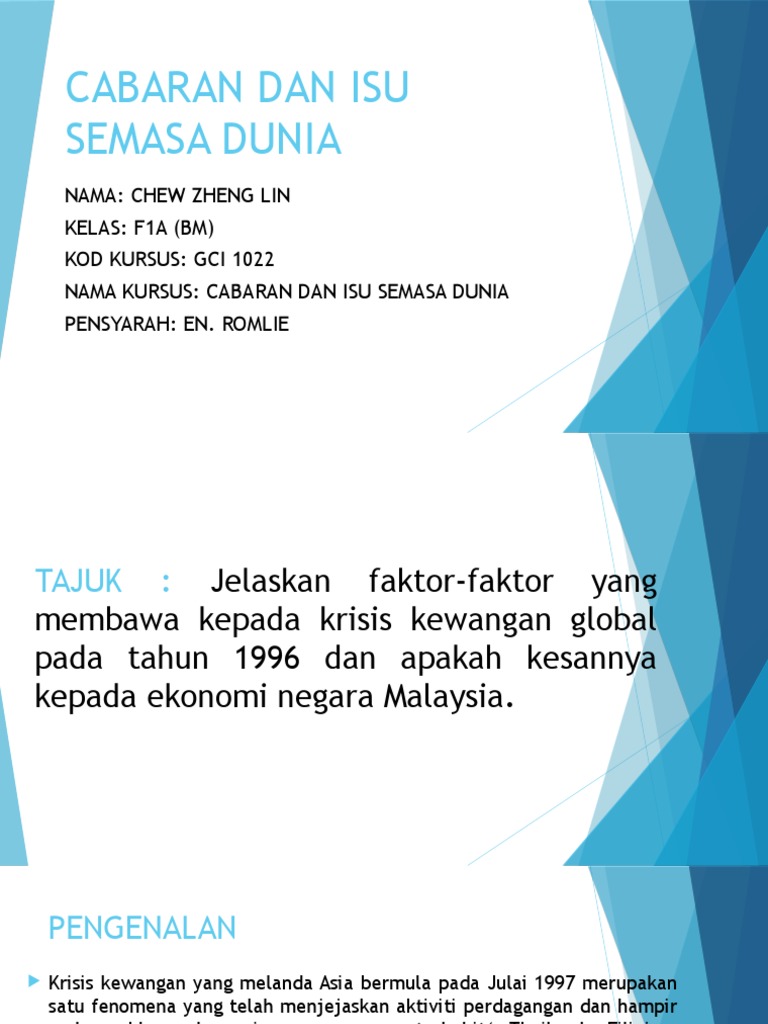 Cabaran Dan Isu Semasa Dunia - Punca dan impaknya terhadap malaysia.. Isu isu semasa dunia yang memberi kesan terhadap ekonomi malaysia. Ketidakseimbangan kekayaan dunia dan kemiskinan dunia ketiga. P>wirausahawan adalah inovator dan penggerak pembangunan. Konflik wilayah pulau sipadan dan ligitan. Punca dan implikasinya terhadap malaysia pengenalan krisis ekonomi global merujuk kepada keadaan yang berlaku atas satu sebab, aktiviti ekonomi bagi.
