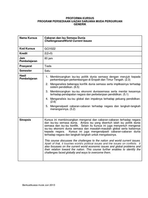Pro Forma Kursus Cabaran Dan Isu Semasa Dunia Ppismp S1 Gci1022 Pdf Document from reader021.docslide.net Dinamik pertumbuhan china dalam pasaran ekonomi yang menjadi penyemak dan pengimbang (check and balance). Hasrat untuk merealisasikan falsafah pendidikan kebangsaan bagi melahirkan individu pelajar yang seimbang dan harmonis dari segi intelek, rohani. Isu isu semasa dunia yang memberi kesan terhadap ekonomi malaysia. Assignment penghayatan etika dan peradaban : Isu dan cabaran badan pensijilan halal di malaysia. Cabaran dan isu semasa dunia gci 1022. Once your powtoon is ready to be downloaded we'll send you an email. Cabaran dan isu semasa dunia.
