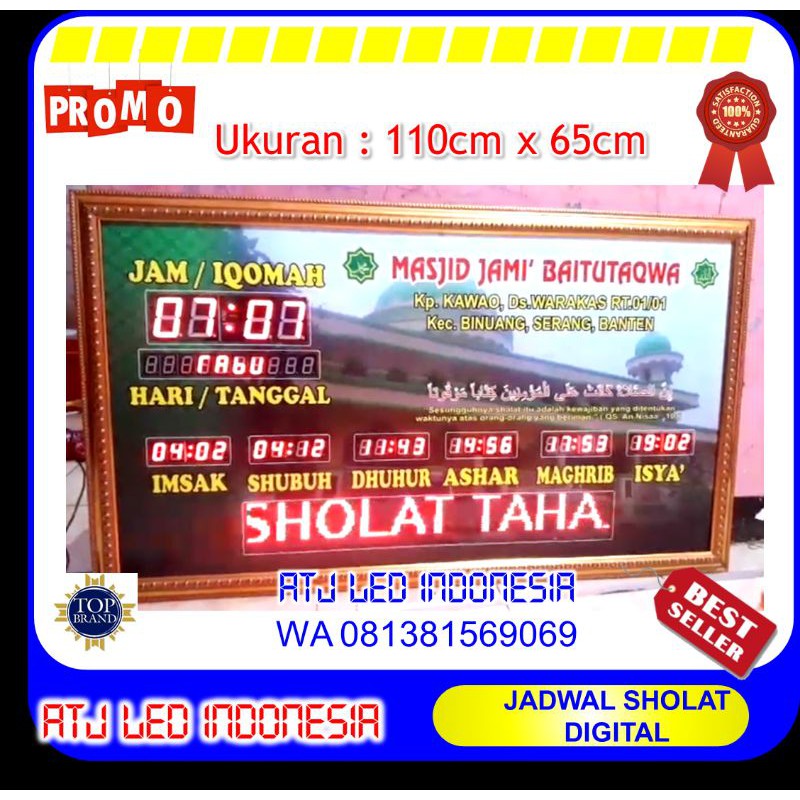 Jual Jadwal Sholat Digital Masjid Baitul Iman Serang Di Lapak Smart Techno Bukalapak from s2.bukalapak.com Waktu maghrib (مغرب) bermula apabila matahari terbenam (hilang bentuk bulatannya) hingga hilang cahaya kemerahan di kaki langit. Aplikasi yang luar biasa, saya memakainya setidaknya 5 kali sehari untuk semua waktu sholat dan. Today prayer times in selangor, selangor malaysia are fajar time 05:49 am, dhuhur time 01:22 pm, asr time 04:47 pm, maghrib time 07:30 pm & isha prayer time 08:45 pm. Jadwal imsak dan buka puasa di serang hari ini, 27 april 2021. Setelah awal ramadan ditetapkan oleh kementerian agama jatuh pada selasa (13/4/2021) kemarin. Bagi umat muslim di kab. Sholat maghrib hari ini 7 juni 2021 di kota jakarta pada pukul 17:48. Selain itu, azan maghrib yang menjadi penanda buka puasa tentunya sangat dinanti umat muslim di tanah air, termasuk di serang, banten.